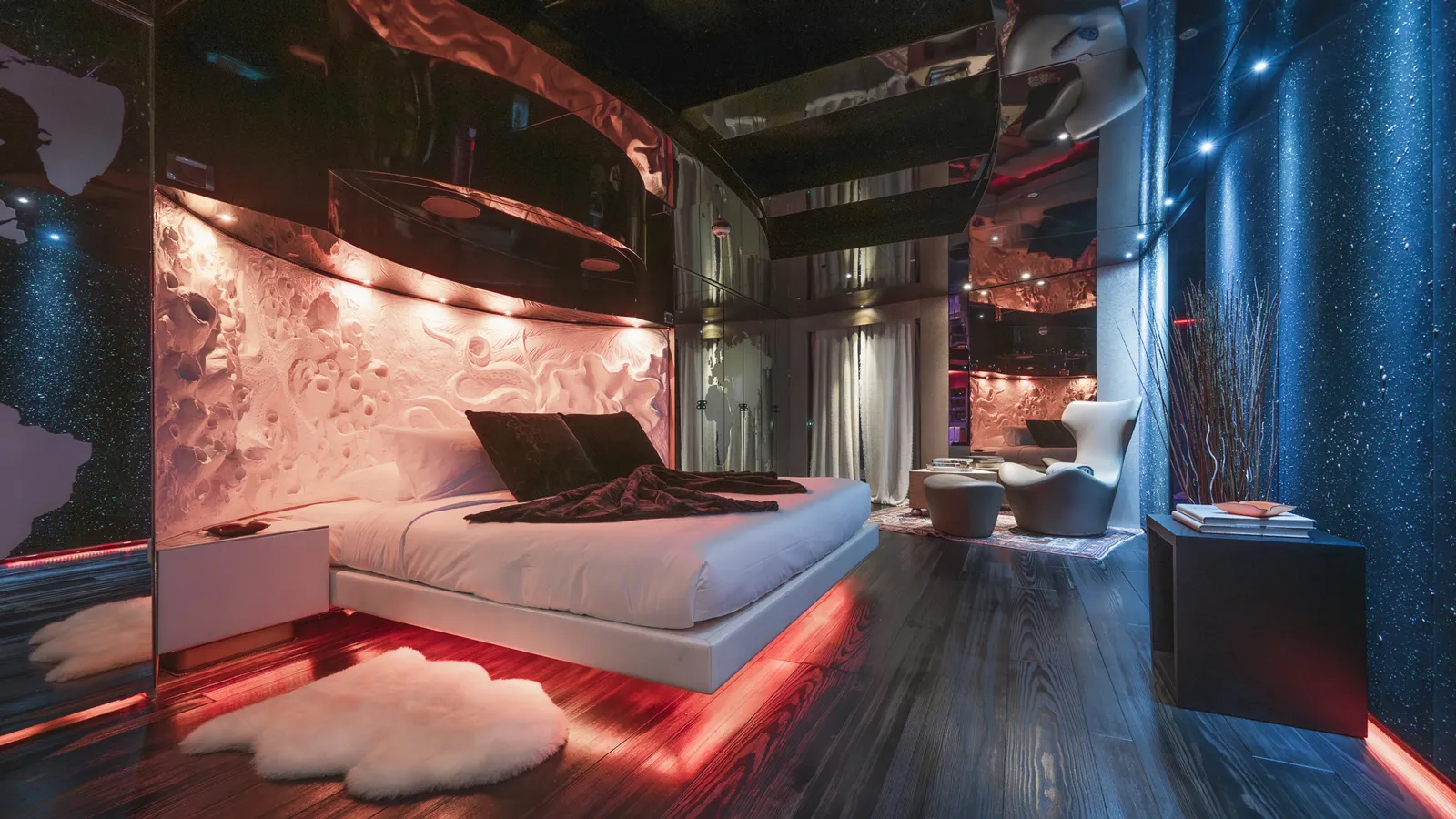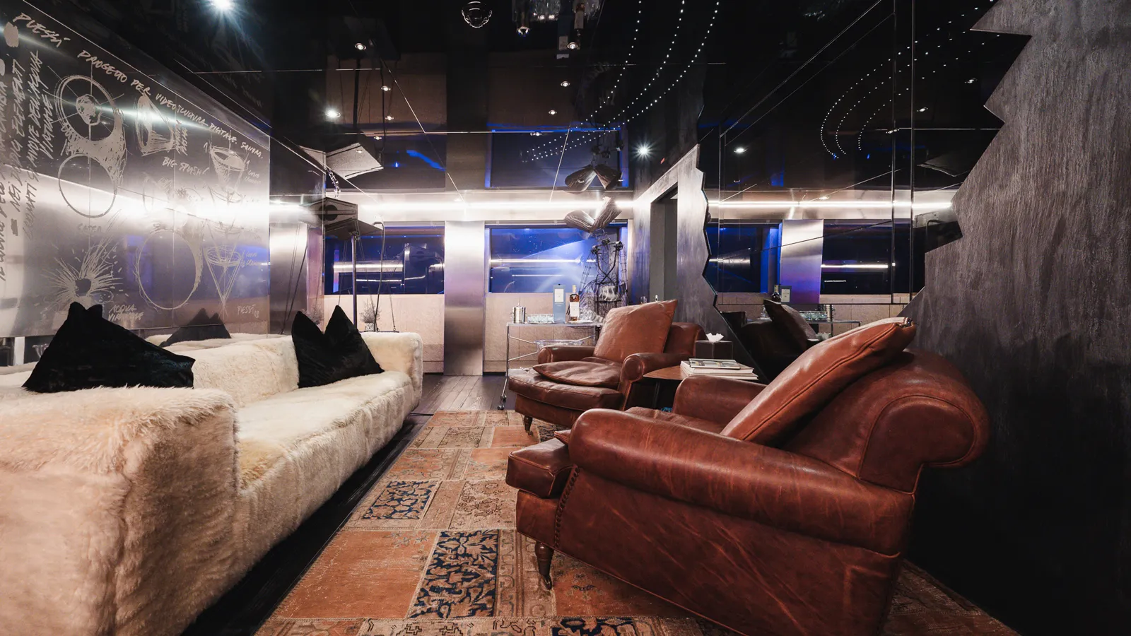 Hệ thống ánh sáng (lighting) là một yếu tố then chốt, sử dụng đèn LED màu và ánh sáng hắt để tạo ra không khí bí ẩn, sang trọng nhưng cũng đầy quyền lực. Thậm chí có báo cáo về việc sử dụng các chi tiết trang trí hình đầu lâu (đã được loại bỏ trong các lần sửa chữaị sau này) để tăng thêm sự “ngông cuồng”.